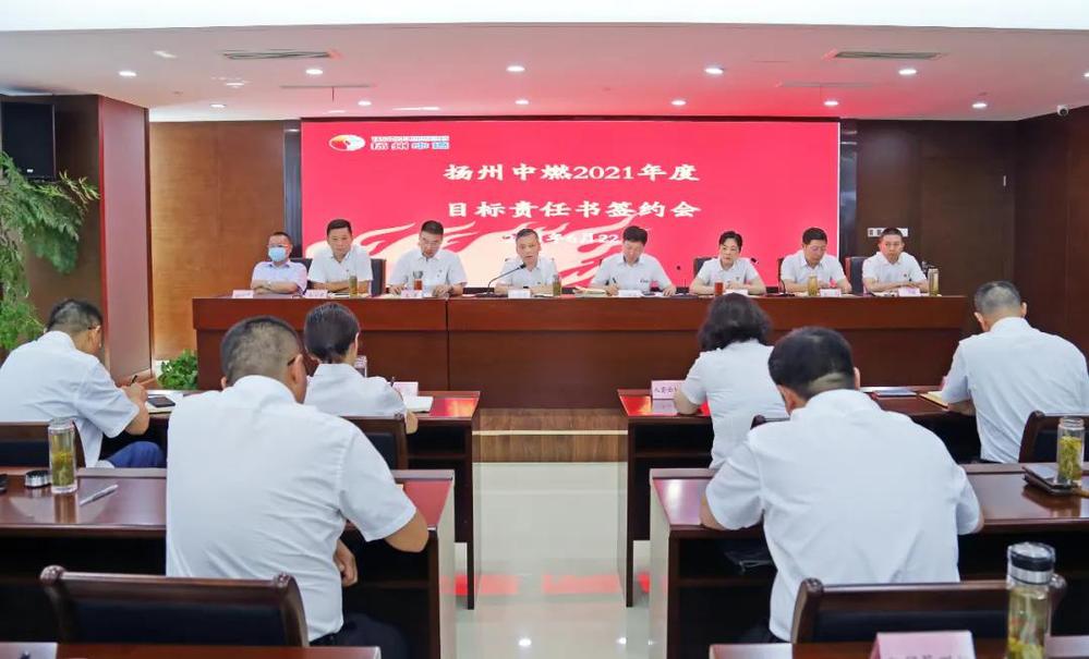 為落實揚州中燃三屆二次董事會決議部署,全面推動公司2021年度各項工作提質(zhì)增效,6月22日上午,公司召開2021年度目標責任書簽約大會,將年度黨風廉政、經(jīng)營目標、安全管理、基層黨建工作任務落地落實落細。公司領(lǐng)導班子成員、中層干部近60人參加會議。
