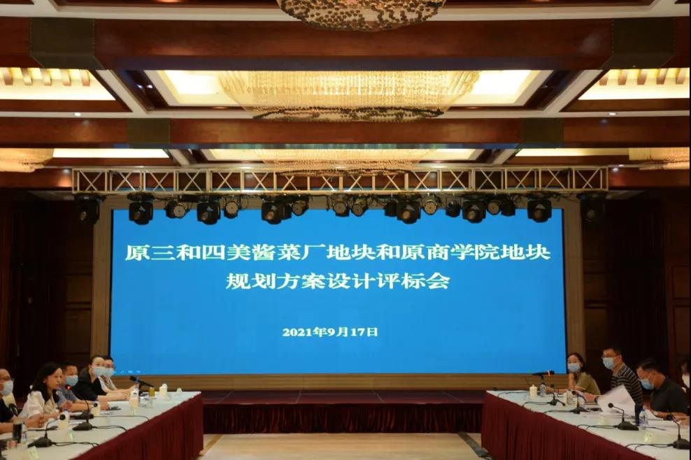 9月17日下午,原三和四美地塊和原商學(xué)院地塊規(guī)劃方案設(shè)計評標(biāo)會在街南書屋玲瓏館舉行。集團董事長葉善祥出席會議,集團副董事長戚磊、副總經(jīng)理潘涵、名城公司總經(jīng)理戴興春及集團相關(guān)部室負責(zé)人參加了活動。