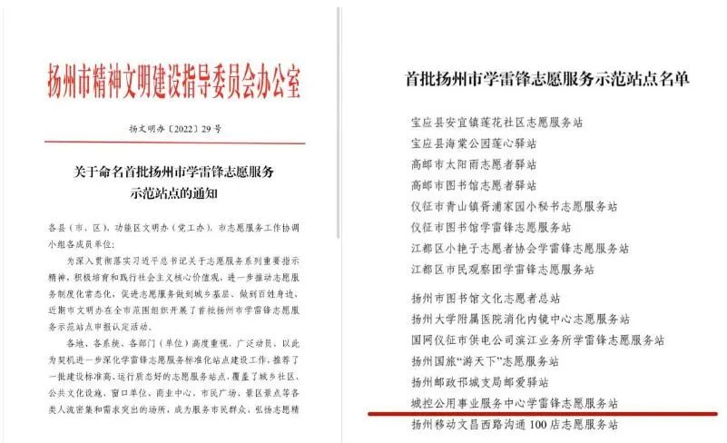 近日,從揚(yáng)州市文明辦傳來(lái)喜報(bào),城控公用事業(yè)服務(wù)中心(長(zhǎng)江水務(wù)服務(wù)廳)被命名為2022年首批揚(yáng)州市學(xué)雷鋒志愿服務(wù)示范站點(diǎn)。