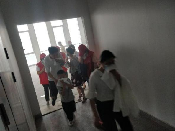“快!快!快!”,樓層安全員引導(dǎo)著被困人員,通過消防樓梯迅速撤離。此時(shí)外圍與各出入口已拉起警戒線,禁止與滅火救援無(wú)關(guān)人員、車輛進(jìn)入大廈或危險(xiǎn)區(qū)域,工作人員對(duì)大廈所有外圍區(qū)域進(jìn)行嚴(yán)管,確保消防通道的暢通,同時(shí)將被困人員指引至內(nèi)街廣場(chǎng)安全地帶。