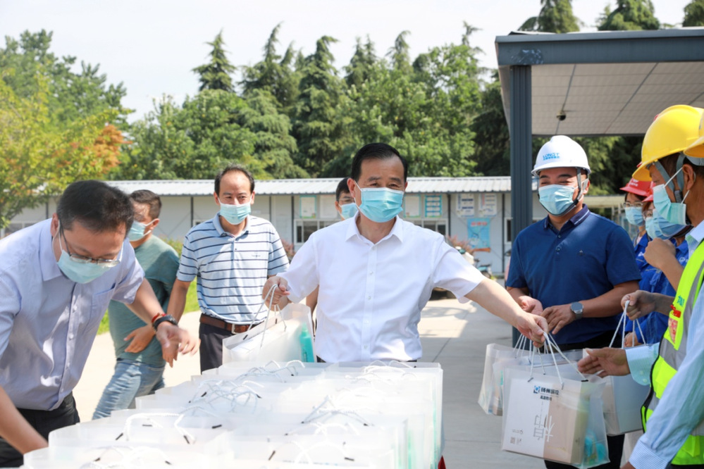 7月13日,董事長葉善祥先后來到運河路亮化工程現(xiàn)場和頤和項目部,詳細了解工程施工情況,看望工程建設(shè)者,對大家的辛勤付出表示感謝。他囑咐現(xiàn)場負責人,高溫下連續(xù)工作非常辛苦,要主動關(guān)心高溫作業(yè)崗位人員,備好備足防暑降溫物品,采取錯時作業(yè)、輪換作業(yè)等措施,合理安排戶外工作時間,切實保障一線職工的身心健康和施工安全。