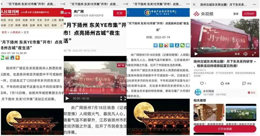 連日來(lái),國(guó)家級(jí)媒體央視頻、央廣網(wǎng)、人民周刊網(wǎng)、中國(guó)產(chǎn)業(yè)經(jīng)濟(jì)網(wǎng)等紛紛聚焦揚(yáng)州,點(diǎn)贊東關(guān)街。