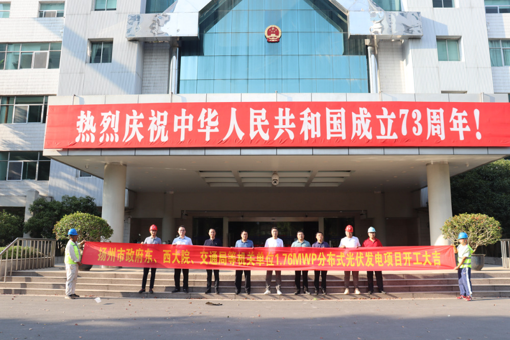 10月2日,由潔源光伏公司投資建設(shè)的揚(yáng)州市政府東、西大院、交通局等公共機(jī)構(gòu)屋頂1.76兆瓦分布式光伏發(fā)電項目開工儀式在揚(yáng)州市政府西大院舉行。揚(yáng)州市機(jī)關(guān)事務(wù)局、揚(yáng)州市機(jī)關(guān)服務(wù)中心、潔源光伏公司相關(guān)負(fù)責(zé)人及工程參建單位有關(guān)代表參加了開工儀式。