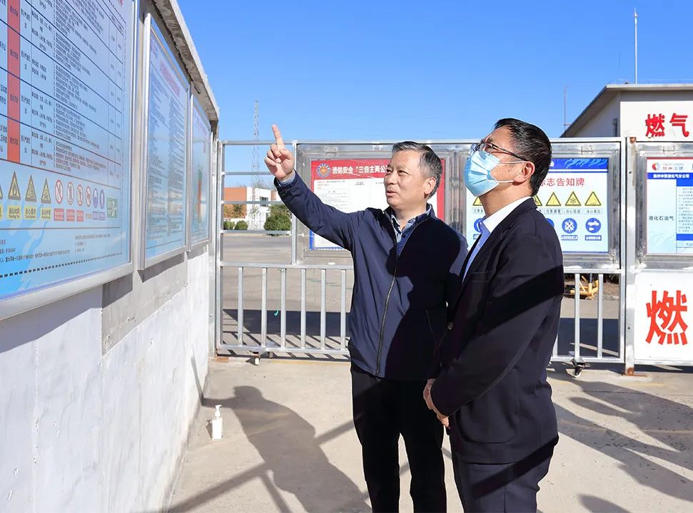 在液化氣場站,湯衛(wèi)華認(rèn)真聽取了有關(guān)情況匯報,仔細(xì)檢查了儲罐區(qū)、灌裝區(qū)設(shè)備、消防設(shè)施和安全告知牌。湯衛(wèi)華要求,要按照規(guī)范精心操作,加密設(shè)備巡查巡檢,做好設(shè)備維護保養(yǎng),確保安全運行。