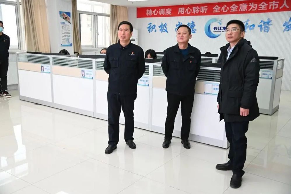 在長(zhǎng)江水務(wù)公司調(diào)度指揮中心,徐飛聽(tīng)取了供水調(diào)度和搶維修工作的情況匯報(bào),對(duì)自來(lái)水入戶(hù)防凍措施提出優(yōu)化建議。他強(qiáng)調(diào),應(yīng)急值班值守對(duì)冬季保供尤關(guān)重要,在充分做好應(yīng)急保障的同時(shí),要做好搶維修人員的出行、作業(yè)和防疫安全的保護(hù),保證安全無(wú)間隙,服務(wù)有溫度。