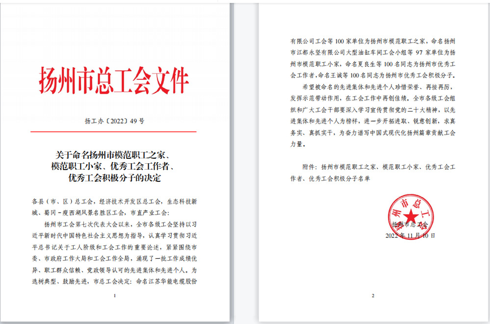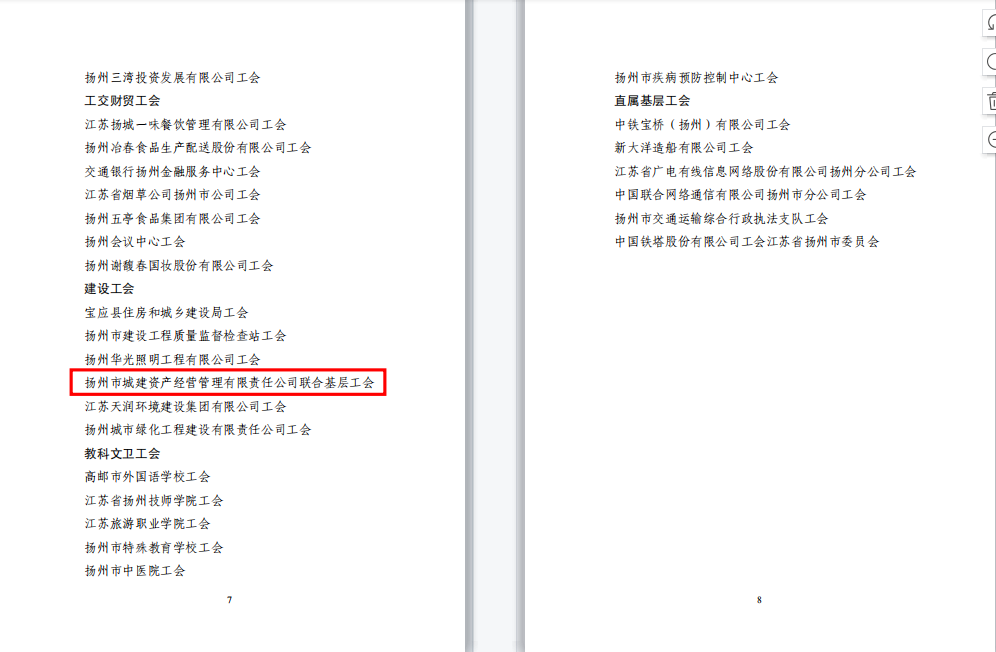 2022年,城建資產(chǎn)聯(lián)合基層工會(huì)緊緊圍繞公司年度中心任務(wù),團(tuán)結(jié)帶領(lǐng)廣大干部職工,積極致力于企業(yè)文化建設(shè)發(fā)展,以為職工謀福利為己任,扎實(shí)履行工會(huì)職能,關(guān)心關(guān)愛(ài)職工身心健康,秉承“干實(shí)事、辦好事、解難事”的宗旨,從“心”出發(fā),真正做職工貼心的“娘家人”。一份耕耘一份收獲,在全體職工齊心協(xié)力的努力下,城建資產(chǎn)聯(lián)合基層工會(huì)被揚(yáng)州市總工會(huì)授予“揚(yáng)州市模范職工之家”榮譽(yù)稱(chēng)號(hào)。
