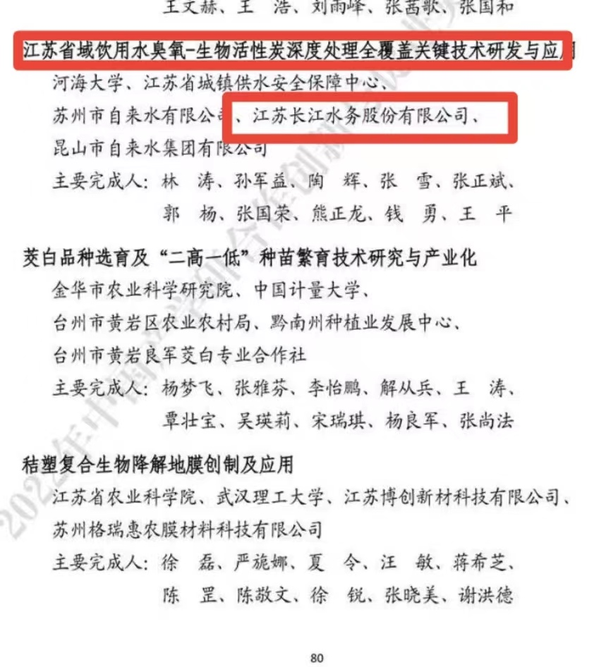 新春伊始,中國產(chǎn)學(xué)研合作促進(jìn)會公示了2022年中國產(chǎn)學(xué)研合作創(chuàng)新與促進(jìn)獎評審結(jié)果,長江水務(wù)公司參與的產(chǎn)學(xué)研項目——《江蘇省域飲用水臭氧-生物活性炭深度處理全覆蓋關(guān)鍵技術(shù)研發(fā)與應(yīng)用》榮獲“中國產(chǎn)學(xué)研合作創(chuàng)新成果優(yōu)秀獎”。