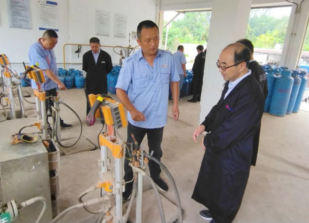 2023年8月14日,江蘇省特檢院副院長(zhǎng)馬歆帶隊(duì),來到揚(yáng)州中燃公司液化氣場(chǎng)站,專題調(diào)研液化石油氣鋼瓶管理與灌裝工作。省特檢院揚(yáng)州分院負(fù)責(zé)人、揚(yáng)州中燃公司分管負(fù)責(zé)人等參加。