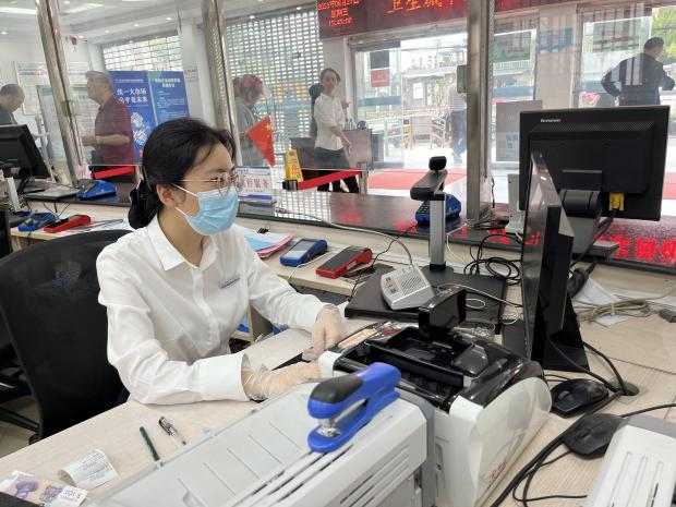 “十一”國(guó)慶當(dāng)天,營(yíng)業(yè)所大廳柜員吳玉瑩一早就提前到崗,整理好上班期間需要用的現(xiàn)金、票據(jù)。大廳正式進(jìn)入營(yíng)業(yè)時(shí)間后,吳玉瑩面帶微笑地迎接每一位進(jìn)入大廳辦理業(yè)務(wù)的用戶,用熱情高質(zhì)的服務(wù)守護(hù)用戶歡樂祥和過(guò)節(jié)。