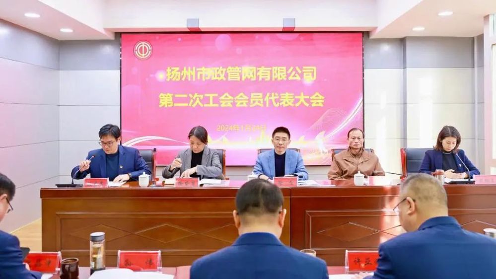 1月24日下午,揚州市政管網(wǎng)有限公司第二次工會會員代表大會順利召開。集團黨委副書記徐飛、市總工會建設(shè)工會主任范華、集團直屬聯(lián)合基層工會主席徐紫月應(yīng)邀參會,公司工會會員代表參加會議。
