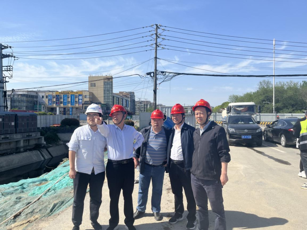 在潤(rùn)揚(yáng)南路快速化改造工程施工現(xiàn)場(chǎng),季紅軍詳細(xì)了解樁基施工、河道治理、頂升工程等實(shí)施情況,并對(duì)下一步重點(diǎn)工作提出具體要求。