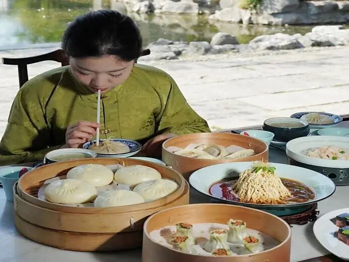 長樂客?!扒镯嵲绮柩偶敝噩F(xiàn)清代鹽商“早茶會客”的雅趣,蟹黃湯包、翡翠燒賣等淮揚(yáng)名點(diǎn)搭配古箏琵琶演奏,讓游客在舌尖與耳畔同步感受非遺魅力。隔壁的芍藥園子書場內(nèi),評彈藝人傾情演繹《珍珠塔》《雙金錠》等經(jīng)典曲目,場場爆滿的盛況印證著傳統(tǒng)曲藝的當(dāng)代生命力。長樂鹽商宴更是海納八方客,單日最高接待量突破200人次,沉浸式鹽商家宴成為美食愛好者的全新打卡地標(biāo)。