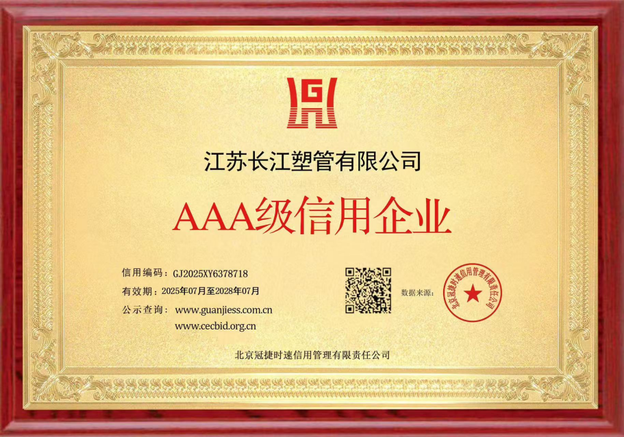 2025年,江蘇長(zhǎng)江塑管有限公司接連榮獲AAA級(jí)信用企業(yè)蟬聯(lián)認(rèn)證與十二星級(jí)卓越售后服務(wù)評(píng)價(jià)。這兩項(xiàng)沉甸甸的榮譽(yù),不僅是國(guó)家權(quán)威機(jī)構(gòu)的高度認(rèn)可,更是企業(yè)全體員工在生產(chǎn)一線以汗水與擔(dān)當(dāng)書(shū)寫(xiě)的奮斗答卷。