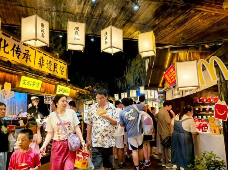 創(chuàng)新融合,不是簡單的“新瓶裝舊酒”,而是要讓傳統(tǒng)空間在當代語境中“長”出新生態(tài)。為此,我們以“歷史建筑+潮流業(yè)態(tài)”經(jīng)營理念,推動東關(guān)街從“旅游打卡地”向“生活方式體驗場”轉(zhuǎn)型。長樂客棧的“鹽商宴”沉浸式餐飲,讓游客穿戴古裝參與“議事廳議價”“碼頭卸貨”劇情,解鎖“漕運密碼”“商幫契約”等歷史典故,實現(xiàn)“一筷一盞皆劇情”的深度體驗。項目運營以來,累計接待游客超8000人次,停留時長從2.1小時延長至4.5小時,帶動周邊商戶營收增長30%。街區(qū)東門城樓《創(chuàng)世·山海經(jīng)》數(shù)字孿生平臺更以AR技術(shù)讓128只神獸“破卷而出”,吸引超萬名游客深度體驗,帶動數(shù)字文創(chuàng)銷售額增長45%,驗證了“數(shù)字技術(shù)+在地文化”的變現(xiàn)潛力。這種“傳統(tǒng)空間+數(shù)字科技”的創(chuàng)新融合,讓老街既保有歷史厚重感,又充滿現(xiàn)代生活氣息。